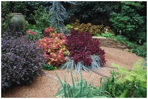 另外,庭园色彩也是影响庭园风格的因素之一,对色彩规划的一个技巧是根据建筑色彩与周围环境确定庭园的主色调。观叶植物在别墅花园的设计中很重要,在英国等欧洲国家,认为花坛中栽种些观叶植物是很自然的事情。此外还可考虑还有叶形的变化、质感的差异等。总之,庭院样式及所栽培植物种类应根据家庭人员组成与年龄结构有所选择,同时也要遵循一定的形式原则。