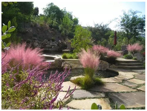 美式园林风格在景观表现上常常比较随意、简洁,特别是住宅庭院往往比较开放。与繁复冗长的传统欧式风格相比,更倾向于自然朴质特征。这种园林风格在其他国家所呈现出来的特点,是在庭院中通过栽植一些地被花草,或结合当地情况,在景观材料的运用上选用当地的一些天然材料或石材作为地面和墙体的装饰来体现自然式的美式园林风貌。