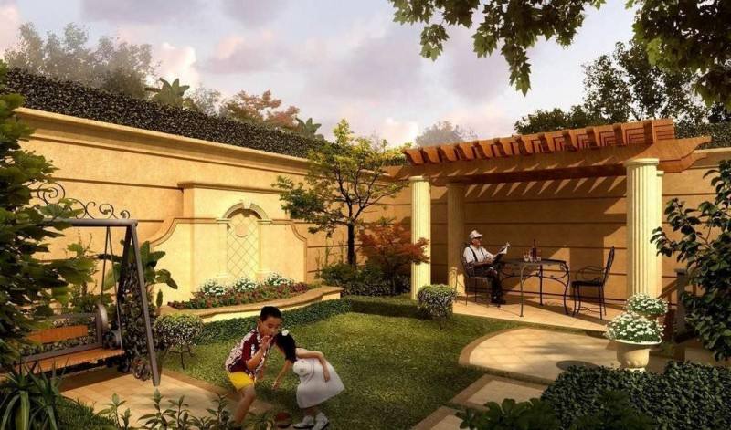 私家花园设计中的许多花池周围可以栽种植物柔化花池造型,私家花园中的植物还可以填充角隅空间,掩饰庭院中空调外机等。