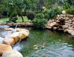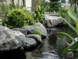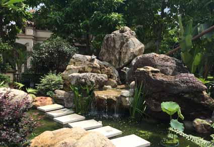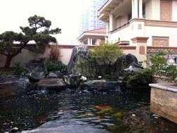 细细的流水、欢快的游鱼与景石完美结合,